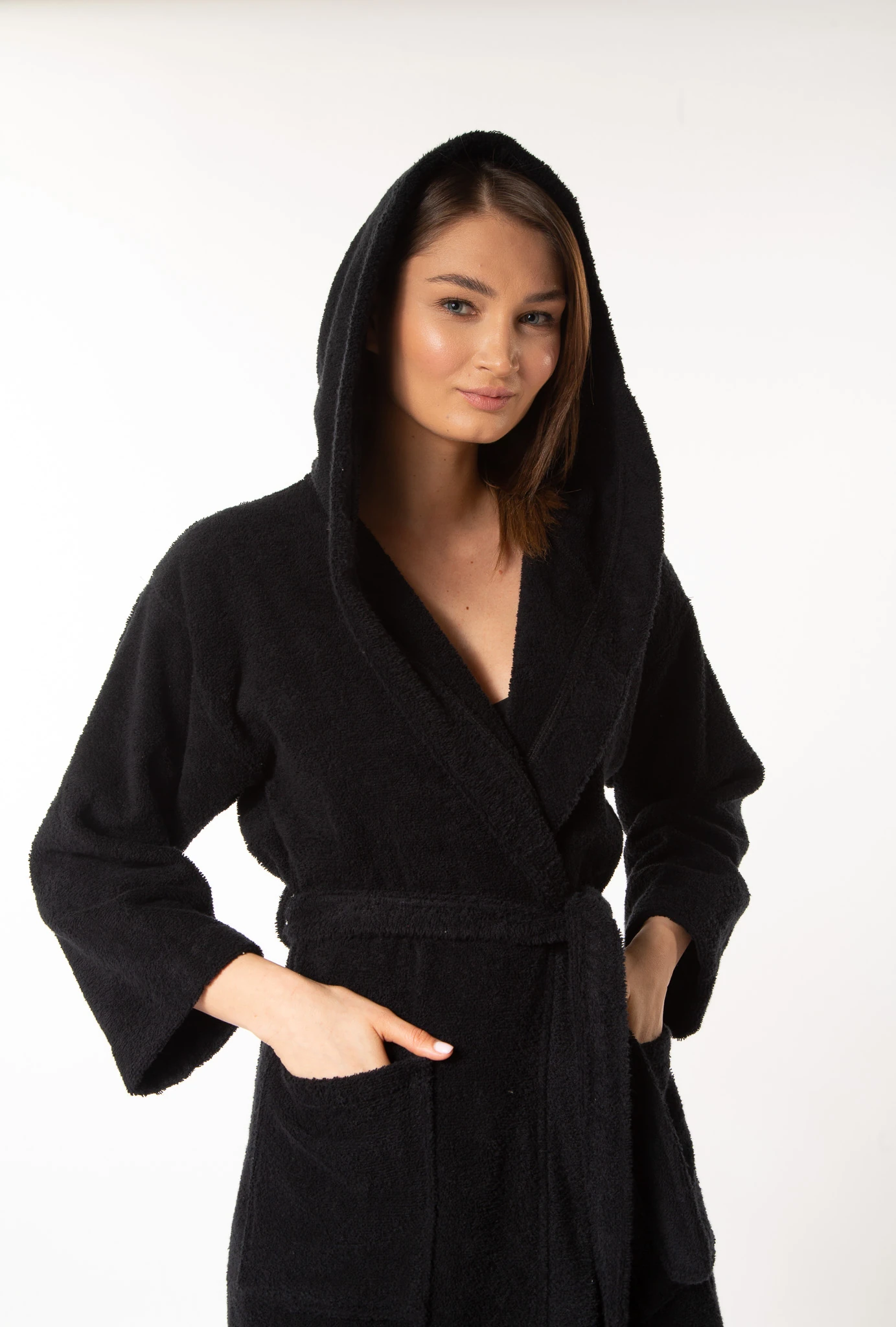 Soft Kadın Kapüşonlu Bornoz - Siyah